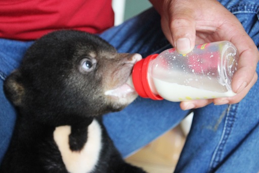 Ngay khi nhận được thông tin về cá thể gấu con này, Tổ chức Động vật châu Á đã nhanh chóng liên lạc với Chi cục Kiểm lâm Sơn La để gửi hướng dẫn chăm sóc đặc biệt dành cho gấu con, bao gồm cách cho ăn, cách pha sữa, ủ ấm, vệ sinh để các cán bộ kiểm lâm có thể tạm thời chăm sóc tốt cá thể gấu này. Gấu con khi mới sinh ra cũng giống như trẻ em, cần có chế độ nuôi dưỡng đặc biệt nhằm đảm bảo sức khỏe. Từ ngày cam kết cứu hộ, Tổ chức Động vật châu Á chi trả toàn bộ chi phí chăm sóc, sữa, đồ ăn của gấu.