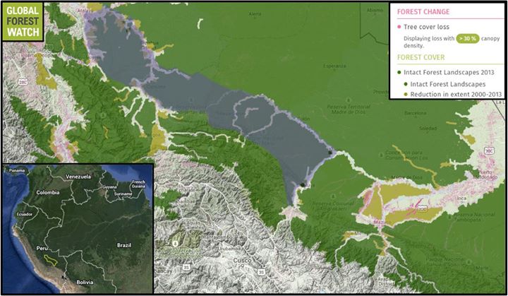 Phần mềm Giám sát rừng toàn cầu cũng chỉ ra suy thoái rừng ở một số khu vực kể từ năm 2000 và hoạt động khai khoáng cũng gia tăng trong thời gian gần đây.