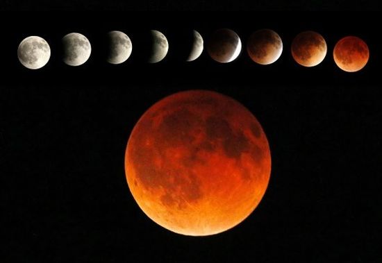 Mặt Trăng đi vào bóng tối của Trái Đất và bắt đầu có màu đồng đỏ trong hơn 70 phút trước khi bắt đầu ra khỏi bóng tối.