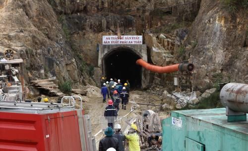 Các lực lượng nỗ lực tìm phương án cứu hộ nạn nhân vụ sập hầm Đa Dâng (Ảnh: Dương Giang/TTXVN)