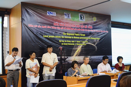 Tại diễn đàn, đại diện người dân tại 3 quốc gia Việt Nam, Thái Lan, Campuchia cùng lên tiếng cảnh báo nạn xây dựng đập thủy điện trên các nhánh chính sông Mê Công đã, đang và sẽ tiếp tục làm sụt giảm loài và giống cá cũng như tác động tiêu cực đến bờ sông…