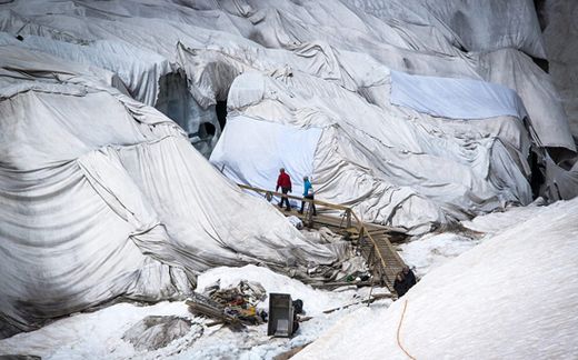 ThienNhien.Net – Nhìn từ xa, sông băng Rhone mang màu trắng tinh khôi thuần khiết nhưng sự thật chỉ được phơi bầy khi trực tiếp mục sở thị, du khách sẽ bàng hoàng nhận ra rằng Rhone được bao bọc bởi những tấm chăn khổng lồ màu trắng, một nỗ lực của Thụy Sĩ để làm chậm lại quá trình băng tan.
