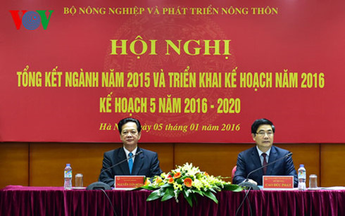 Sáng 5/1, tại Hà Nội, Thủ tướng Nguyễn Tấn Dũng tới dự và phát biểu chỉ đạo hội nghị Tổng kết năm 2015, triển khai nhiệm vụ năm 2016 và kế hoạch 5 năm 2016 – 2020 của Ngành Nông nghiệp và phát triển nông thôn.