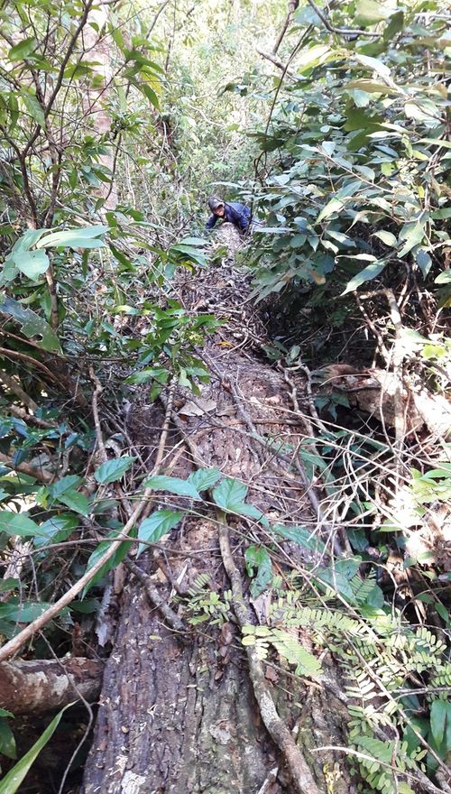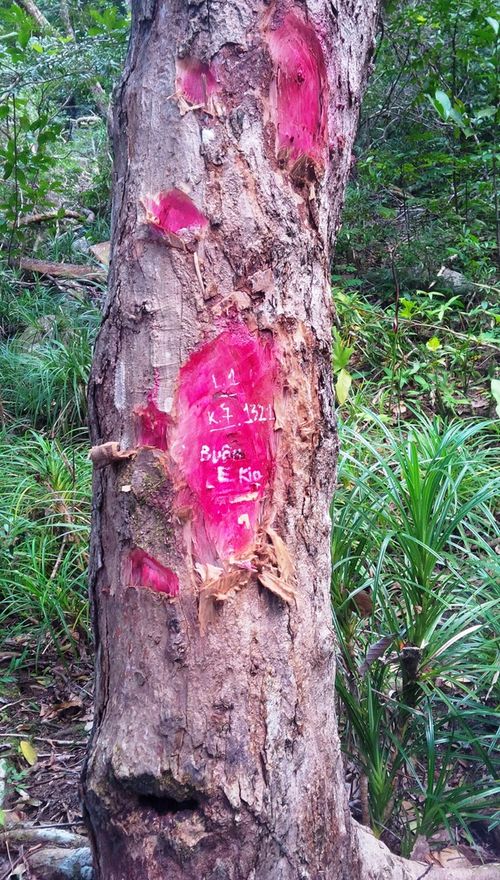 Để giữ an toàn cho người dẫn đường, PV Lao Động phải làm hình “minh họa” trên các thân gỗ.
