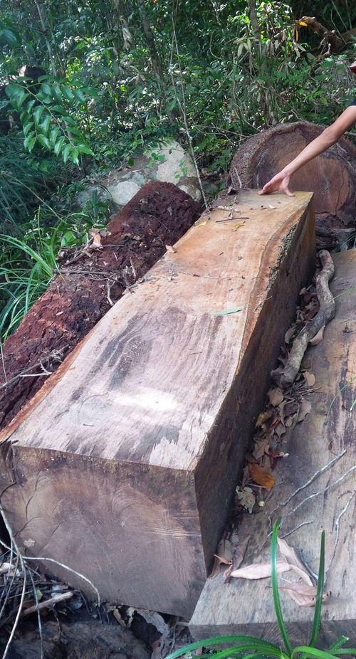 Gỗ xẻ hộp chưa kịp vận chuyển tại tiểu khu 1321 thuộc lâm phần Ban QLRPH Ia Rsai.Gỗ nằm la liệt cả trên bộ lẫn dưới suối.Những hộp gỗ dài 3-4m, bề mặt rộng 60 – 80cm được xẻ vuông vức.Lâm tặc xẻ gỗ trong lâm phần Ban QLRPH Ia Rsai như chốn không người.Lâm tặc đốn hạ gỗ nhiều đến nỗi không kịp vận chuyển ra ngoài.Gốc cây 2 người ôm, bị cưa lốc phạt ngang.
