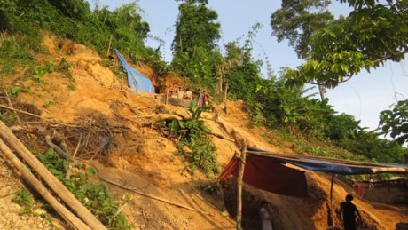 Từ trụ sở UBND xã A Vao đến các bãi vàng trái phép chỉ mất khoảng nửa ngày vừa đi xe máy vừa lội bộ trong rừng. Khoảng cuối năm 2015, chúng tôi đến khu vực làm vàng nằm lưng chừng một ngọn núi cao và chứng kiến cảnh làm vàng vô cùng tàn khốc. Mất hơn 2 giờ đeo bám vào cành cây, dây leo, chúng tôi mới lên được lưng chừng núi có lán trại làm vàng.