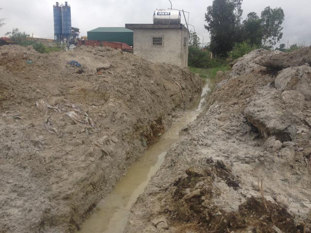 Nước thải từ Nhà máy Sản xuất bê tông Vinh Thành thải ra có màu đục. Trong quá trình sản xuất cũng như rửa bồn xe chở bê tông tươi được chảy thẳng ra một con mương tự đào để chảy thẳng ra cống thoát nước sát với đường sắt Bắc – Nam và QL1A. Trong Nhà máy, một con mương lớn được đơn vị này đào dài khoảng hơn 100m. Dưới mương là nguồn nước thải có màu đục ngầu, phía trên là chất thải đọng lại của vữa bê tông và phụ gia khiến cho con đường tiếp cận khu vực mương bùn lầy bao phủ, đi lại rất khó khăn.