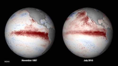 Hiện tượngEl Nino khủng khiếp nhất trong lịch sử đã khiến nhiệt độ bề mặt Thái Bình Dương tăng bất thường tại nhiều khu vực rộng lớn. Được mệnh danh là “Godzilla El Nino”, đợt El Nino năm nay đã gây ra nhiều hiện tượng kì dị như rắn biển và các loài rùa biển sống ở vùng nước ấm di chuyển rất xa dọc theo các đường bờ biển lạnh như California. El Nino ở cường độ khủng khiếp như vậy có thể phá vỡ các chuỗi liên kết dưới đại dương và khí hậu toàn cầu. ĐợtEl Nino năm 2015 khiến California ghi nhận số lượng sinh vật biển như sư tử biển mắc cạn nhiều nhất do giảm thức ăn và số lượng cá heo mắc lưới kỷ lục do thay đổi điều kiện đại dương khiến chúng bơi vào bờ nhiều hơn.