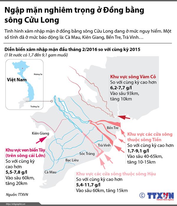 Tin tức Diễn biến ngập mặn nghiêm trọng ở Đồng bằng sông Cửu Long 22/02/2016 FacebookTwitterPinterestWhatsApp Bài liên quan: Phục hồi và quản lý bền vững rừng ngập mặn vùng Đồng bằng sông Hồng Doanh nghiệp tự ý phá gần 1 ha rừng ngập mặn ven biển trong lúc làm bờ kè Rừng ngập mặn bị “quây” trong sân golf Xuân Đám sẽ bị tác động tiêu cực