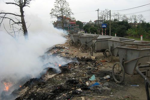 Để xử lý lượng rác này, 4 thôn đã thành lập 4 tổ, với 10 vệ sinh viên, thu gom rác bằng xe đẩy tay tiêu chuẩn. Trả thù lao cho vệ sinh viên, hằng tháng các thôn đã thu tiền của các hộ dân tùy theo tính chất làm nghề và mức độ phát thải rác. Xã hợp đồng với Công ty cổ phần Môi trường và Công trình đô thị Nam Thăng Long vận chuyển từ điểm tập kết của các thôn về trạm trung chuyển, phân loại, xử lý rác bảo đảm vệ sinh. Tuy nhiên, việc đốt rác gây ô nhiễm môi trường ở đây thì cơ quan nọ đùn đẩy cho cơ quan kia và người dân ở giữa chịu khổ.