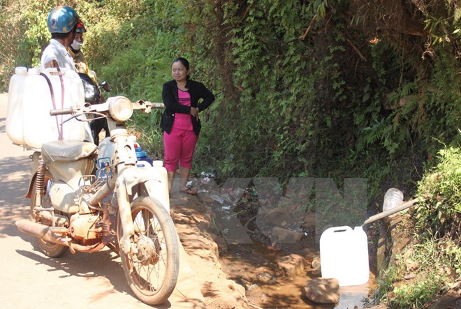 Nhằm có nước sinh hoạt, người dân trong vùng phải đi xa hàng km để tìm kiếm nguồn nước suối, một số hộ dân phải mua nước đóng bình với giá đắt đỏ.