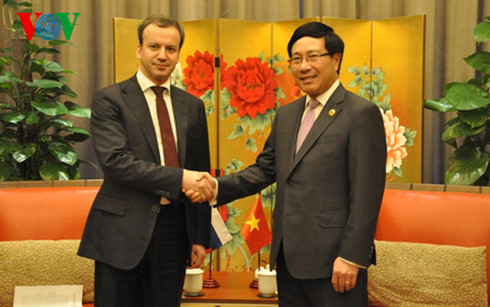 Nhân dịp tham dự Hội nghị, Phó Thủ tướng, Bộ trưởng Ngoại giao Phạm Bình Minh đã có cuộc gặp song phương với Phó Thủ tướng Cộng hòa Liên bang Nga Arkady Dvorkovich.