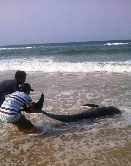 Sự việc được phát hiện vào chiều cùng ngày, lúc đầu con cá voi này trôi dạt vào bờ biển thôn Cự Lại Nam, xã Phú Hải trong tình trạng kiệt sức và được người dân cố gắng đẩy ra biển. Tuy nhiên, một lát sau thì con cá này chết và trôi dạt vào bờ biển thôn Cự Lại Bắc (Phú Hải) cách đó khoảng 1 km. Trọng lượng con cá voi này khoảng 100 kg và được người dân địa phương nhanh chóng chôn con cá này.