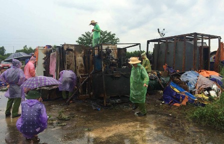ThienNhien.Net – Lực lượng chức năng đang khám nghiệm hiện trường vụ cháy gây thiệt hại nghiêm trọng tại công ty CP gang thép Vạn Lợi (Khu kinh tế Vũng Áng, Hà Tĩnh).