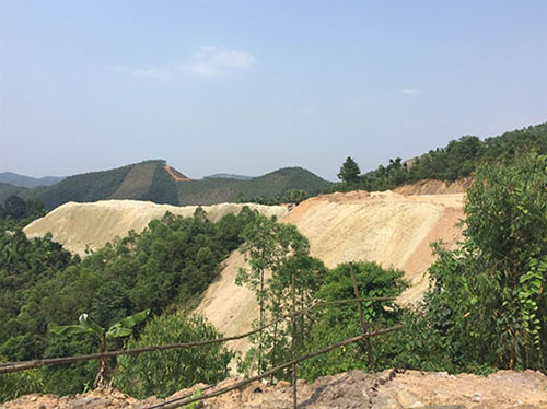 Để lấy được lớp khoáng sản ở dưới, những đối tượng khai thác trái phép phải móc lớp đất đá bên trên đổ xuống khu vực đường đi không được sử dụng mở trước đây. Chủ tịch UBND xã Thạch Khoán Phùng Văn Việt xác nhận, khu vực Đỉnh Đa – Dốc Đỏ là diện tích trồng cây lâm nghiệp của các hộ dân.
