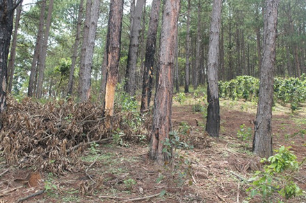 Nhiều hộ dân đã ngang nhiên chặt hạ cây thông rồi dùng xe xúc đất, xe máy cày tới xúc, san ủi lấn chiếm đất rừng tại nhiều cách rừng thông thuộc TP.Đà Lạt (Lâm Đồng) và huyện Lạc Dương để lấy mặt bằng sản xuất nông nghiệp.