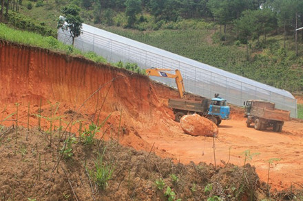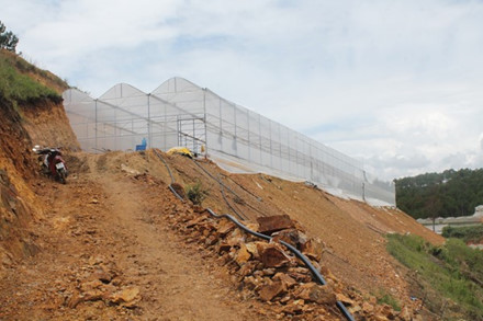 Trong khi hai bên đổ lỗi cho nhau, thì diện tích đất rừng vẫn tiếp tục bị hộ ông Đức, ông Tùng cho xe xúc đất, xe máy cày tới xúc, san ủi bằng phẳng. Tại đây, hai hộ dân này đã làm nhà kính và trồng hoa…
