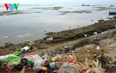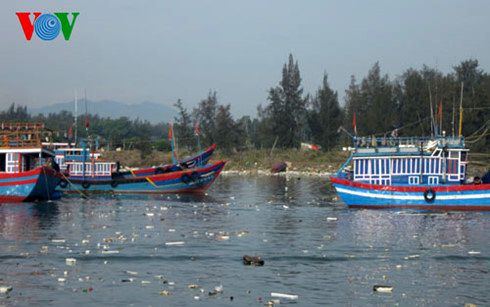 Tại tỉnh Quảng Ngãi, tình trạng ô nhiễm môi trường ven biển cũng đã được cảnh báo từ lâu. Rác thải đủ loại trôi dập dềnh tại khu vực cảng Sa Kỳ, xã Bình Châu, huyện Bình Sơn.