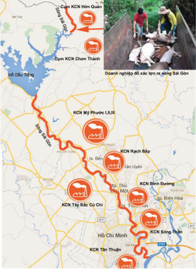Theo các chuyên gia, sông Sài Gòn không chỉ là nơi tiếp nhận nước thải từ các hoạt động công nghiệp, sinh hoạt ở TPHCM mà còn là nơi tiếp nhận nước thải từ trên 50 khu công nghiệp. Trong đó có những khu công nghiệp lớn, nhiều nhà máy sử dụng hóa chất như Sóng Thần, Mỹ Phước, Bắc Củ Chi… Nước thải từ các nơi này tuy đổ ra một số sông – rạch nhỏ nhưng cuối cùng cũng đổ về sông Sài Gòn. Hay các hoạt động công nghiệp, khai thác khoáng sản, sinh hoạt, nông nghiệp… từ một số tỉnh như Lâm Đồng, Đắc Nông, Bình Phước… cũng đổ về.