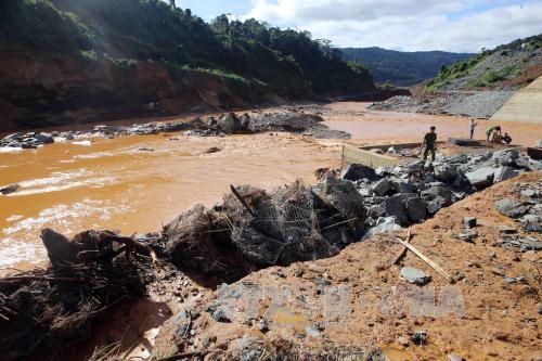 Trước đó, khoảng 16 giờ 25 ngày 13/9 đã xảy ra sự cố tại Thủy điện sông Bung 2, cửa van số 2 của hầm dẫn dòng bị nước lũ cuốn trôi về hạ lưu khiến 2 công nhân bị mất tích.