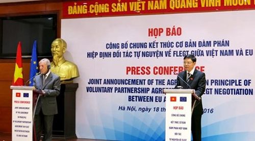 ThienNhien.Net – Sáng 18.11 tại Hà Nội, Bộ trưởng Bộ NNPTNT Nguyễn Xuân Cường và ông Karmenu Vella – Cao ủy về Môi trường, các vấn đề về hàng hải và thủy sản của Ủy ban Châu Âu đồng chủ trì lễ Công bố kết thúc cơ bản đàm phán Hiệp định đối tác tự nguyện(VPA) về Thực thi lâm luật, quản trị và thương mại lâm sản (FLEGT) giữa Việt Nam và Liên minh Châu Âu (EU).