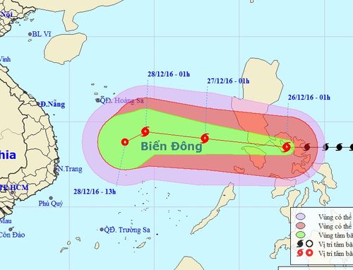 Dự báo trong 24 giờ tới, bão di chuyển theo hướng Tây, mỗi giờ đi được khoảng 20km. Đến 01 giờ ngày 27/12, vị trí tâm bão ở vào khoảng 14,0 độ Vĩ Bắc; 118,0 độ Kinh Đông, trên vùng biển phía Đông khu vực giữa Biển Đông. Sức gió mạnh nhất ở vùng gần tâm bão mạnh cấp 12 (tức là khoảng từ 120 đến 135km một giờ), giật cấp 13-14.