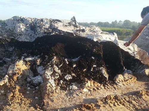D. cho biết chất thải mà họ đang đóng bao là bùn thải công nghiệp, chở từ các công ty KCN Gò Dầu mang về ủ. “Loại bùn này ủ hơn một năm thì đóng bao chở lên Tây Ninh rồi chuyển qua Campuchia bán cho người dân bón cây, hơn 10.000 đồng/bao. Mua bao nhiêu cũng có, mua số lượng nhiều công ty sẽ cho xe chở đến tận nơi” – D. chỉ tay vào những bao tải chứa bùn thải công nghiệp, nói.
