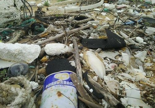 Tại khu vực bờ biển khảo sát có nhiều ngư cụ bị hư hỏng, dây neo, rác thủy tinh vỡ từ các chai lọ, hộp đồ uống, thức ăn nhanh. Đa số các loại chai lọ, bao bì, hộp đồ uống có nhãn hiệu xuất xứ từ Hồng Kông, Trung Quốc.