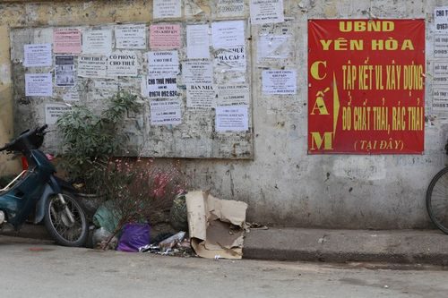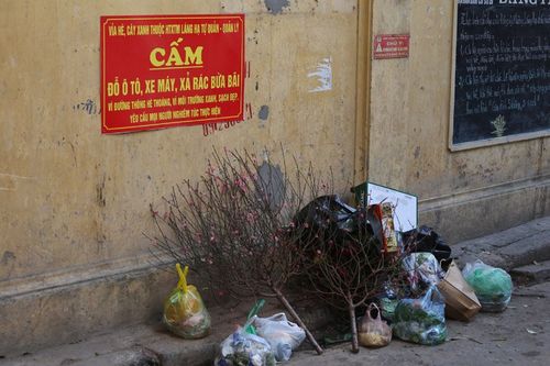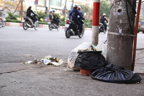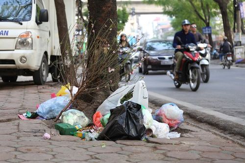 Rác vẫn bừa bãi nơi công cộngTrong ngõ ở đường Láng, rác được chất thành đống. Theo người dân ở đây, sau khi nhân viên môi trường dọn rác đi thì chỉ 30 phút lại xuất hiện những đống rác mớiNhững túi rác bốc mùi vứt đầy vỉa hè làm đường phố trở nên xấu xí và mất vệ sinhSau Tết, lượng rác nhiều hơn so với ngày thườngAnh Nguyễn Thắng, sống ở đường Thái Thịnh, quận Đống Đa cho biết: Những đống rác này những ngày sau Tết xuất hiện rất nhiềuTại phường Yên Hòa, dù có biển cấm đổ rác nhưng người dân vẫn vô tư chất rác thành đốngNhững đống rác gây ô nhiễm môi trường chình ình giữa đườngQuản lý tại công viên Cầu Giấy cũng cho hay, đang lúng túng trong việc xử phạt hành vi vứt rác thải trên vỉa hè, đường phố