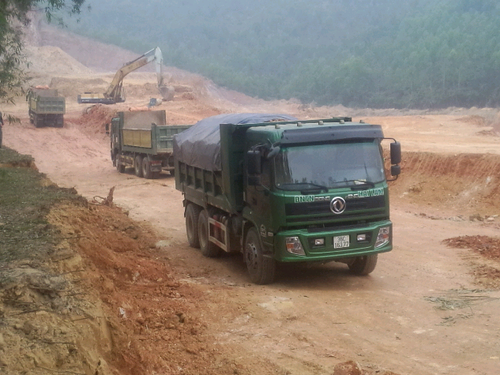 Cả đại công trường xe, máy đang hoạt động rầm rộ, tiếng máy múc gầm rú, quay vòng, nhả khói đen ngòm đưa gầu phá núi, múc đất ồ ạt lên xe. Từng xe ô tô to, nhỏ lần lượt được múc đầy với số lượng quá tải rồi tài xế đạp ga cho xe chạy. Cứ thế, trung bình mỗi ngày có đến hàng trăm lượt xe ra, vào vận chuyển đất đi khắp nơi để san lấp công trình, làm mặt bằng xây dựng, gây bức xúc trong dư luận xã hội.