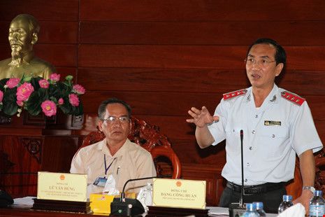 Chủ tịch tỉnh Hậu Giang Lữ Văn Hùng thay mặt lãnh đạo tỉnh tiếp thu quyết định thanh tra. Ảnh: Khánh Hoàng