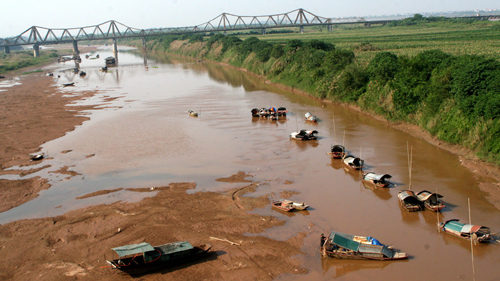 Mực nước sông Hồng xuống thấp đã ảnh hưởng tới sinh hoạt và sản xuất của vùng hạ du (Ảnh: Ngọc Thắng)