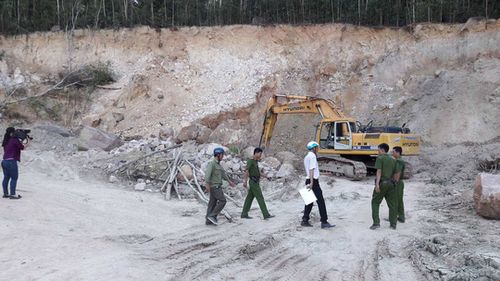 Trước đó, vào lúc 15 giờ 30 phút, ngày 12-4, Phòng Cảnh sát Môi trường Công an tỉnh Kiên Giang phối hợp với các ngành chức năng ở huyện Phú Quốc tiến hành kiểm tra và bắt quả tang nhiều phương tiện đang khai thác khoáng sản trái phép (đá, đất sỏi đỏ) tại tổ 1, khu phố 7, thị trấn An Thới. Vào thời điểm này, lực lượng chức năng phát hiện có 5 xe tải trọng loại 13 tấn và 1 xe cuốc đang thực hiện hành vi khai thác và vận chuyển hàng chục khối đá, đất sỏi đỏ ra bên ngoài cùng với 3 xe tải khác đang nằm chờ “ăn hàng”.