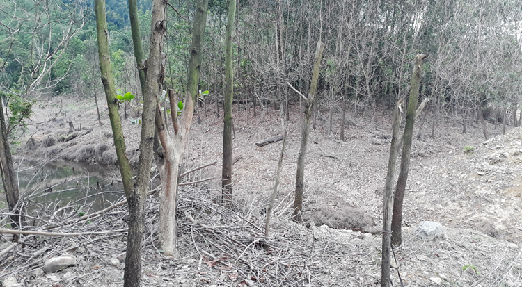 ThienNhien.Net – Công trình thủy điện Hà Nang của Công ty cổ phần Thiên Tân đã làm chết hàng loạt cây trồng của người dân xã Trà Thủy (huyện Trà Bồng, Quảng Ngãi) từ Tết đến nay nhưng công ty vẫn chưa có biện pháp khắc phục. Ở ven bờ hồ đã vậy, trên khu tái định cư, nhiều người dân đang khốn đốn vì nhà cửa bị hư hỏng, chực sụp, đe dọa đến tính mạng.