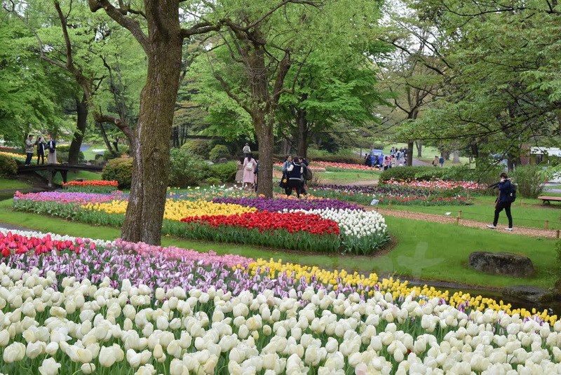ThienNhien.Net – Những bông hoa tuylip là điểm nhấn tại Công viên kỷ niệm Showa ở Tachikawa, Tokyo và thu hút đông khách tham quan.