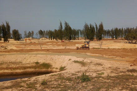 Ngày 28.2.2017, Sở TNMT yêu cầu chủ đầu tư bổ sung quyết định phê duyệt báo cáo đánh giá tác động môi trường. Thế nhưng khi các thủ tục, hồ sơ chưa hoàn thiện thì chủ đầu tư đã phá rừng phòng hộ (phi lao), triển khai dự án. Minh chứng rõ ràng nhất là chính UBND tỉnh đã có văn bản cho phép dự án được động thổ vào ngày 24.6.2015.