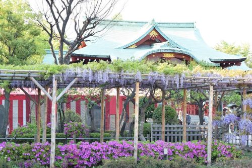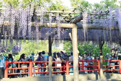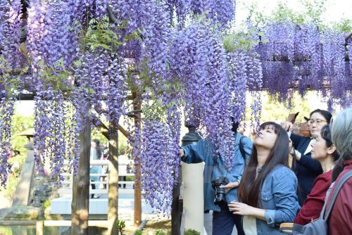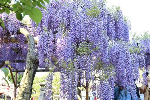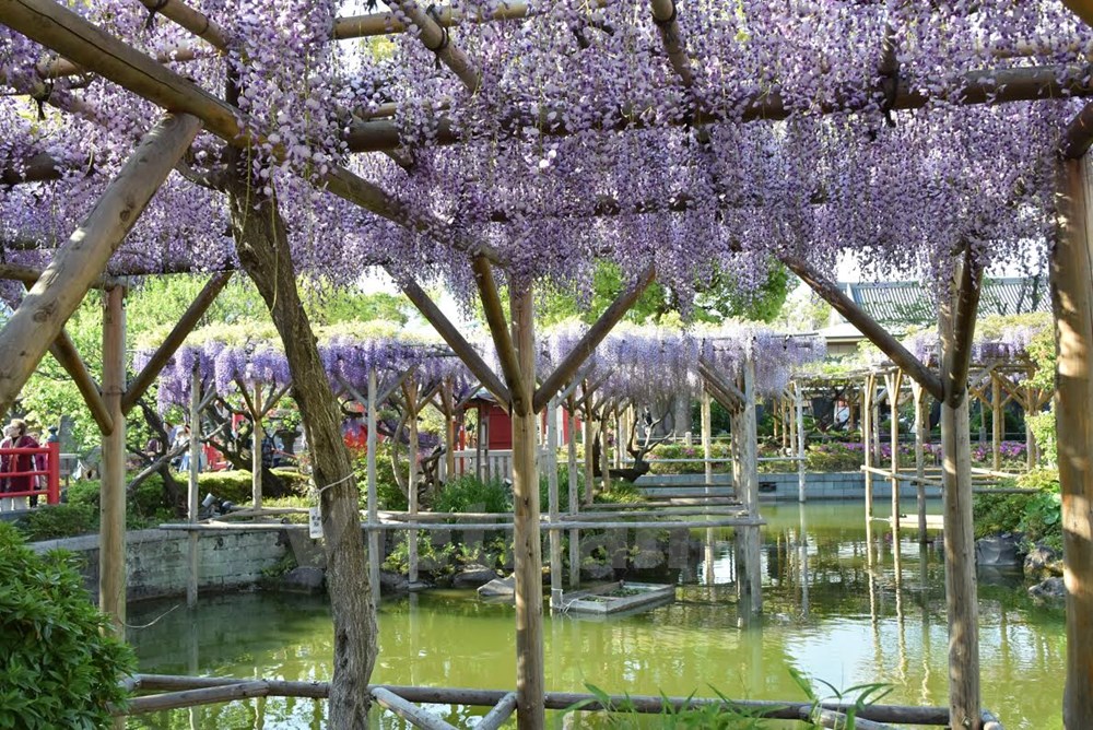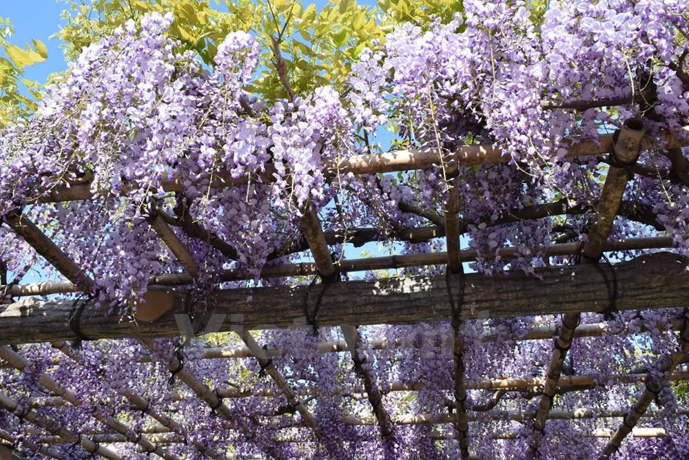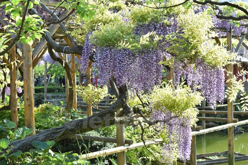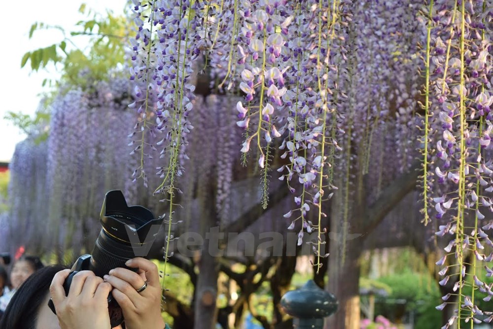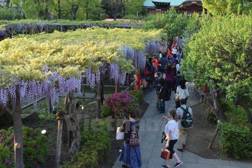 Đền Kameido Tenjin (Tokyo) có 15 giàn hoa tử đằng và hơn 100 giống loại. (Ảnh: Nguyễn Tuyến/Vietnam+)