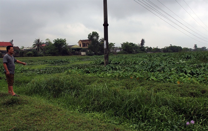 Theo quan sát của PV, mặc dù đang giữa vụ xuân nhưng cánh đồng phủ một màu xanh của cỏ dại. Thi thoảng lại có một vài ao nuôi nhỏ nhưng nước trong ao đen ngòm; nhiều hộ tận dụng khoanh vùng đất trồng lúa, giữ cỏ để chăn thả trâu bò. Một vài thửa ruộng được người dân trồng lúa nhưng còi cọc, kém phát triển.
