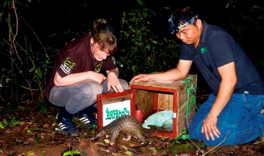 ThienNhien.Net – Đêm 6/5 vừa qua, 53 cá thể tê tê Java (Manis javanica) đã được tái thả thành công về với tự nhiên. Trước đó 1 tuần, 40 cá thể tê tê cũng được Trung tâm Nghiên cứu và Bảo tồn động vật hoang dã (SVW) cùng với Vườn quốc gia Cúc Phương tiến hành.