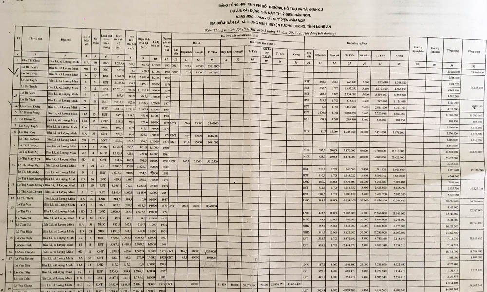 Đại diện các hộ dân bị ảnh hưởng trong giải phóng mặt bằng (GPMB) xây dựng thủy điện Nâm Nơn ở bản Lả, xã Lượng Minh và Xá Lượng (huyện Tương Dương, Nghệ An) cho biết: Từ cuối tháng 8/2014, các hộ dân nhận một khoản tiền đền bù đất nông nghiệp, đất vườn liền kề đất ở.