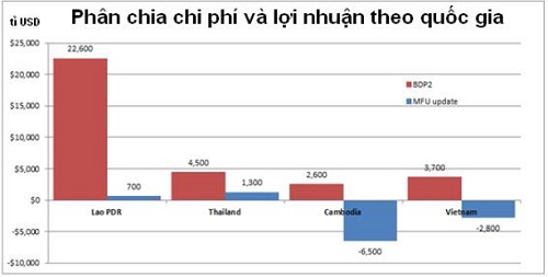 Về mặt phân bổ lợi ích theo quốc gia, BDP2 kết luận rằng kế hoạch xây đập sẽ mang lại lợi ích cho tất cả các nước Hạ lưu sông Mê Kông, trong đó Lào sẽ được hưởng lợi nhiều nhất. Tuy nhiên, báo cáo NREM cho rằng lợi ích mà Lào và Thái Lan nhận được thấp hơn nhiều so với ước tính của BDP2, trong khi Campuchia và Việt Nam sẽ phải gánh chịu tác động kinh tế theo hướng bất lợi (Bảng 3).