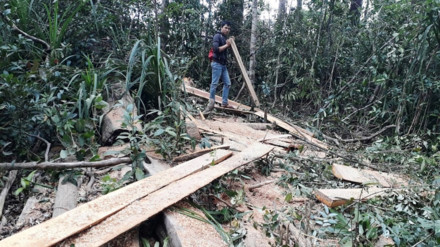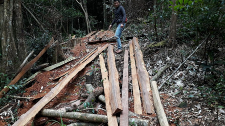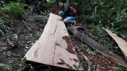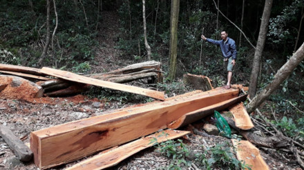 ThienNhien.Net – Những lóng gỗ được cắt xẻ vuông vức trải dài cả khu vực rộng lớn, thân cây bị cưa xăng phạt ngang, đổ gục. Bãi tập kết la liệt gỗ chờ được tẩu tán. Nhiều khoảnh rừng bị phá tan hoang, gỗ cũ mới trộn lẫn chứng tỏ lâm tặc phá rừng trong một thời gian rất dài. Có những cây, lâm tặc đốn hạ xong chẳng buồn lấy đi. Chỉ đạo, kiểm tra là động thái của Chủ tịch UBND huyện Mang Yang – Nguyễn Như Phi sau khi được PV cung cấp hình ảnh. Lạ một điều, rừng bị phá thì dân biết, mà lực lượng bảo vệ rừng thì ….không thấy gì.