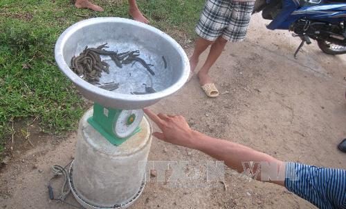 Người dân địa phương không biết thương lái mua đỉa là ai (Ảnh: Nguyễn Trọng Lịch/TTXVN)