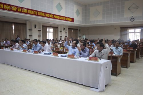 Trong ngày làm việc thứ 3 tại kỳ họp thứ 5 HĐND tỉnh Quảng Nam khóa IX diễn ra sáng 19-7, các đại biểu HĐND tỉnh đã biểu quyết bằng hình thức giơ tay để thông qua tổng cộng 14 nghị quyết.
