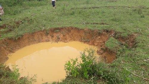 Như Dân Việt/ NTNN đã thông tin, bắt đầu từ tháng 6 đến nay các hố “tử thần” lần lượt xuất hiện trên cánh đồng trồng ngô, lạc của thôn Tân Đức 3, cách đập thủy điện Hố Hô khoảng 1km về phía hạ nguồn, khiến người dân nơi đây rất lo lắng.