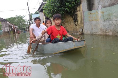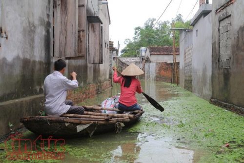 Bất kể muốn đi đâu ra ngoài thôn, người dân đều phải di chuyển bằng thuyền.Hơn một tuần nay, học sinh các vùng bị ảnh hưởng do vỡ đê được nghỉ học.Trâu, bò, lợn gà được đưa lên cao.Nhiều trang trại do bị ngập nên phải di chuyển ra ngoài đường ở tạm.Sau 1 tuần, có những chỗ nước vẫn ngập đến gần nóc nhà.Nhiều gia đình khóa cửa bỏ nhà đi ở nhờ do nước ngập quá cao.