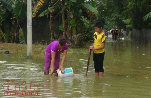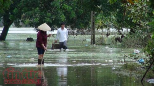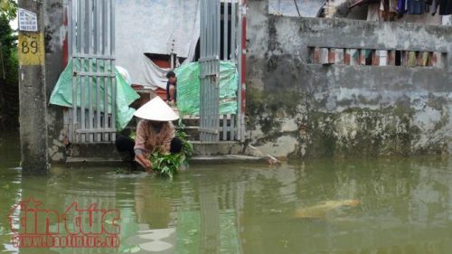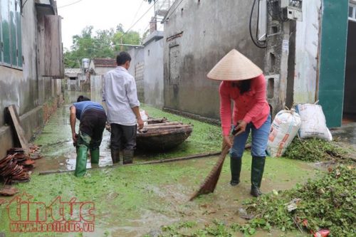 Nước vẫn chưa rút tại nhiều thôn.Việc đi lại của người dân vẫn gặp nhiều khó khăn.Nước rút đến đâu, người dân dọn dẹp nhà cửa, đường làng ngõ xóm đến đấy.Rác thải lại đem ra đổ xuống nước khiến cho môi trường càng ô nhiễm nghiêm trọng.Ngày 2 lần, công ty nước sạch chở nước ăn đến cho người dân vùng lũ sử dụng.