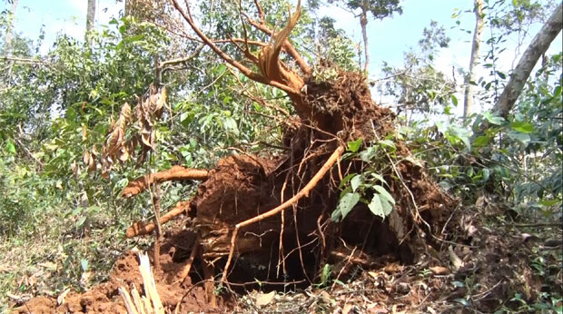 Chúng tôi đi thực tế tại các tiểu khu 1628, 1629 và 1329 thuộc lâm phần Khu bảo tồn thiên nhiên Nam Nung, chứng kiến nhiều cây rừng bị bật gốc, gãy đổ hàng loạt, thậm chí nhiều cây thuộc diện cổ thụ với đường kính lớn cũng bị tàn phá. Do mật độ cây đổ dày đặc, nên việc di chuyển những cây đổ này là hết sức khó khăn. Tiểu khu 1329 là khu vực rừng bị ngã đổ nặng nhất, nhiều khu vực mức thiệt hại khoảng 80%. Giám đốc Khu bảo tồn thiên nhiên Nam Nung Nguyễn Văn Mạnh khẳng định: “Nguyên nhân cây rừng bị gãy đổ, bật gốc tại Khu bảo tồn thiên nhiên Nam Nung là do ảnh hưởng của bão số 12. Hiện, chúng tôi đang tăng cường các biện pháp nghiệp vụ để bảo vệ hiện trường, ngăn ngừa một số đối tượng lợi dụng việc cây ngã đổ để khai thác rừng, đồng thời báo cáo các cơ quan chức năng để tìm các giải pháp khắc phục. Trước mắt, chúng tôi tổ chức cắt dọn những cây gãy đổ chắn ngang các đường chính dẫn vào các tiểu khu có cây rừng ngã đổ để thống kê thiệt hại, còn về lâu dài phải chờ ý kiến chỉ đạo của cấp trên”.