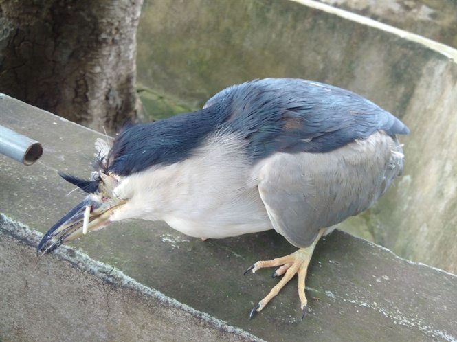 Sau đó vài phút, tôi thực sự sốc khi theo anh Nam ra phía đầu nhà, nơi chứa những lồng cò, vạc vừa bẫy được. Ở đây, trong chiếc lồng lưới sắt, đã có khoảng 2 chục con vạc loại lớn, màu nâu bị bắt. Con nào con nấy đều bị “khoá” chiếc mỏ dài bằng chính chiếc lông cánh của chúng xuyên qua lỗ mũi. Anh Nam giải thích, để chúng không mổ nhau hoặc không mổ người khi bắt chúng. “Từng có người bị nó mổ trúng mắt rồi. Còn mổ rách thịt, chảy máu thì nhiều”, anh Nam nói.