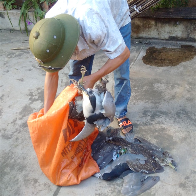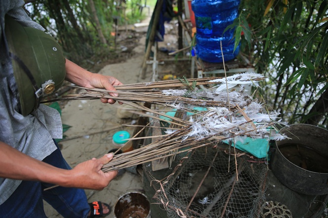 “Ở đây săn bắt chim không bị cấm hay sao?”, tôi hỏi. Vẫn cắm cúi vặt lông con chim, người đàn ông đáp: “Cấm thì sao dám làm vậy. Chỉ cấm dùng súng săn bắn thôi. Còn các loại bẫy thì thoải mái. Tôi nghe nói bên Hà Tĩnh cấm săn bắt chim cò lâu rồi nhưng ở đây không bị cấm”.